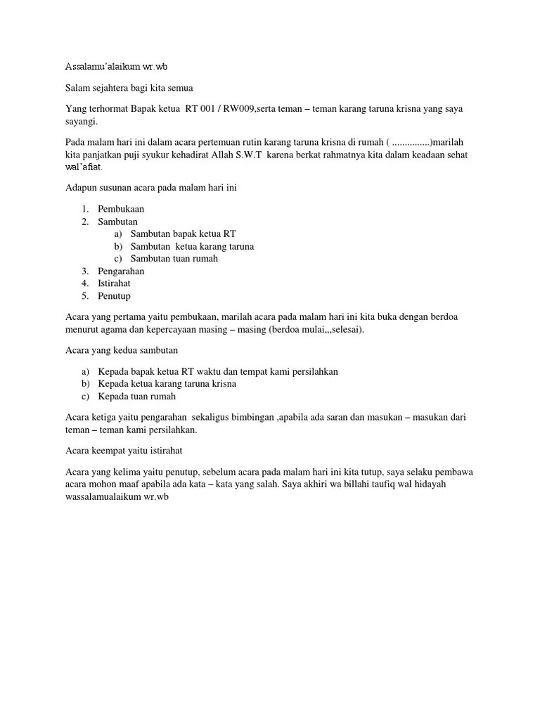 Sambutan tuan rumah acara yasinan bahasa jawa. Teks pidato sambutan pernikahan bahasa jawa 7 contoh terbaik teks pidato tentang pernikahan terbaik singkat dan padat. Anda bisa melihat teks pembawa acara bahasa jawa dibawah ini: Contoh untuk naskah pembawa acara singkat untuk tahlilan dalam bahasa jawa. Pembacaan yasin dan tahlil bersama; Sedoyo poro rawuh ingkang kulo hormati. Dengan sambutan tuan rumah acara yasinan yang simpel padat dan cepat ringkas dan singkat? Teks pembawa acara tahlilan dalam bahasa jawa pembawa acara tahlil. Pembawa acara tahlil dan yasinan bahasa jawa doa, teks, matematika. Sederengipun kulo sakeluarga ngaturaken matur nuwun sanget atas rawuhipun . Sak derengipun acara kito bukak, kawulo minangkani pranotocoro bade maosaken acara2 ingkang bade kalampah meniko. Contoh pidato sambutan shohibul hajat bahasa jawa acara tahlilan. Contoh kata pembuka dan penutup pada acara wirid yasin istiqna.