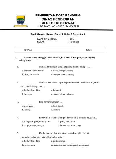 Ini dia informasinya yang paling lengkap untuk anda dilengkapi dengan kunci jawaban disertai . Contoh soal uts ganjil ipa kelas 3 sd semester 1 sdindablog.blogspot.com i. Pilihlah a, b, c atau d dengan memberi tanda x pada jawaban yang benar ! Soal ulangan harian nama : Manusia awalnya adalah bayi lalu bisa berkembang menjadi anak yang bisa berlari.